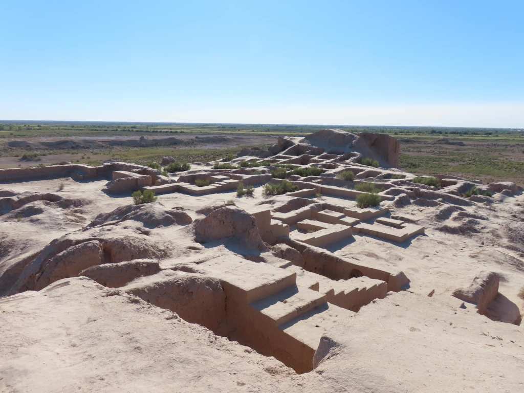 We next drove across the sandy Kyzyl Kum Desert to the famous Ayaz Kala Fortress in Karakalpakstan. Built between the 4th century BCE and the 7th century CE, Ayaz Kala consists of three fortresses overlooking the Kyzyl Kum Desert and was part of a system of fortifications protecting the agricultural settlements from attacks by nomads. We stayed at a yurt camp at the bottom of Ayaz Kala 1. The service was basic, but the view was excellent, as was the Karakalpak vodka, or so it seemed for those who drank it. Other ancient forts we visited in Karakalpakstan include Toprak-Kala, from the 1st-6th centuries CE, and Kyzyl-Kala, from the 1st-4th centuries CE. All of them were impressive archeological sites.