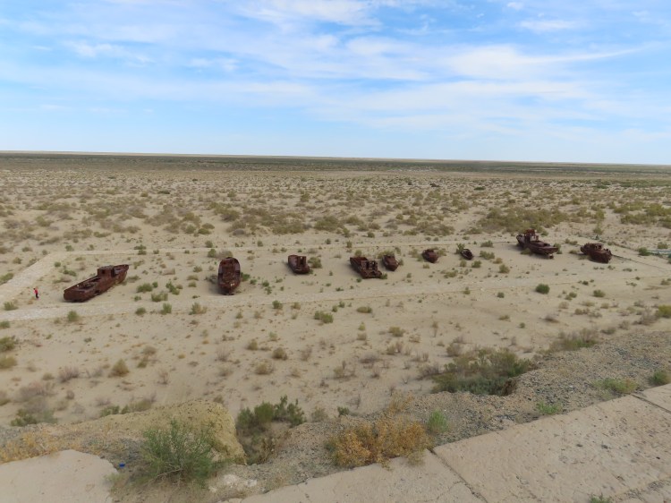 Returning to Karakalpakstan, we made the 200-kilometer drive to Nukus, the capital of the Republic of Karakalpakstan. In Nukus, we visited the famous State Museum of Art, also known as the Savitsky Art Museum, which contains the world’s second-largest collection of Russian avant-garde art and exposition of Karakalpak applied arts items. After a night in Nukus, we began our long journey to the Aral Sea. The Aral Sea was once one of the largest lakes in the world. However, excessive irrigation of the Amu Darya River for cotton cultivation caused it to shrink and created an ecological disaster. On our way to the Aral Sea, we stopped in Muynak to visit the famous ship cemetery and Aral Sea Museum. After Muynak, it was nothing but off-road. Driving to the Aral Sea involves hundreds of kilometers of desert off-roading with only the stars and sun to navigate. We were part of a convoy of around 10 Toyota Land Cruisers, including Italian and Slovakian tourists.